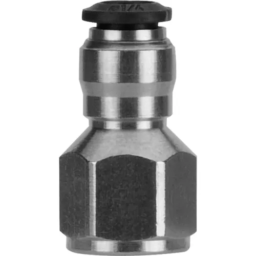 Push to Connect Tube Fitting - Nickel Plated Brass w/ Plastic Release Ring - Female Straight - 4mm Tube OD x M5 Metric Female