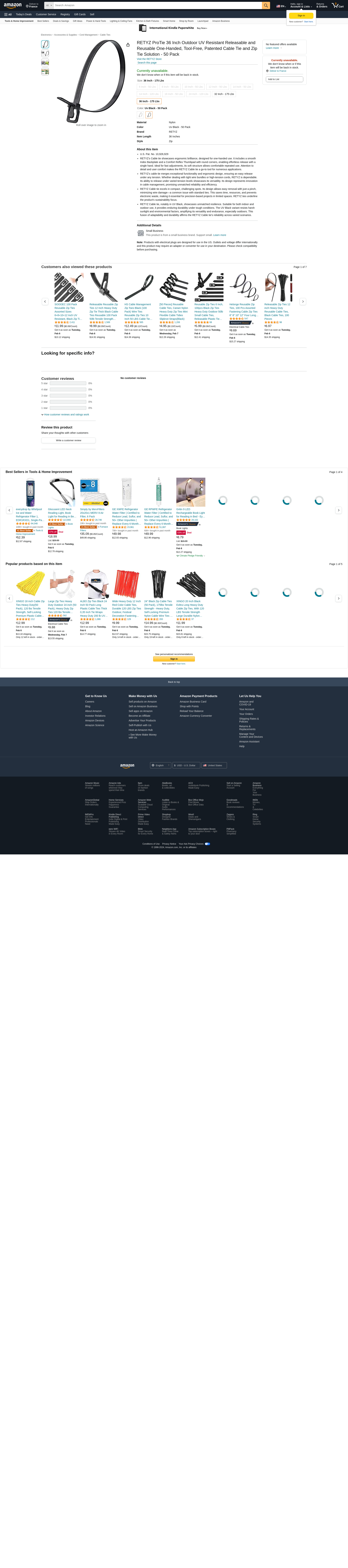 RETYZ ProTie 36 Inch Outdoor UV Resistant Releasable and Reusable One-Handed, Tool-Free, Patented Cable Tie and Zip Tie Solution - 50 Pack
