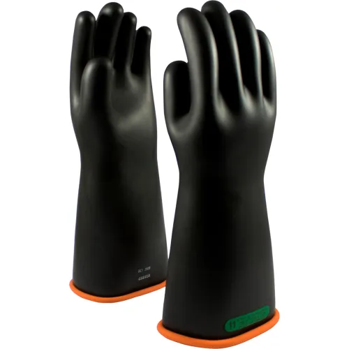- This Product is Electrical Rated Gloves, Two Tone, Black W/Orange Inner Color, 16", Unlined, Smooth Finish, Beaded Rolled Cuff, Chlorinated, Pair Packed, Class 3