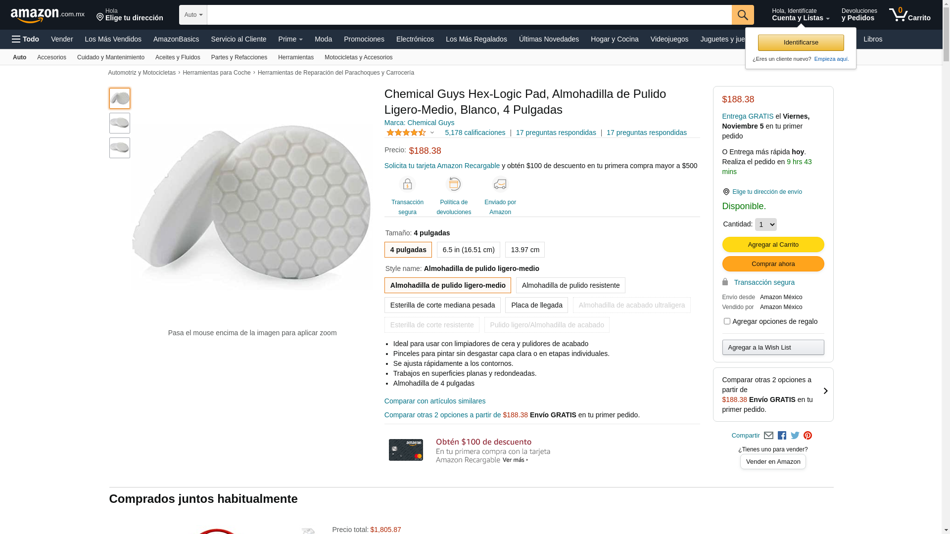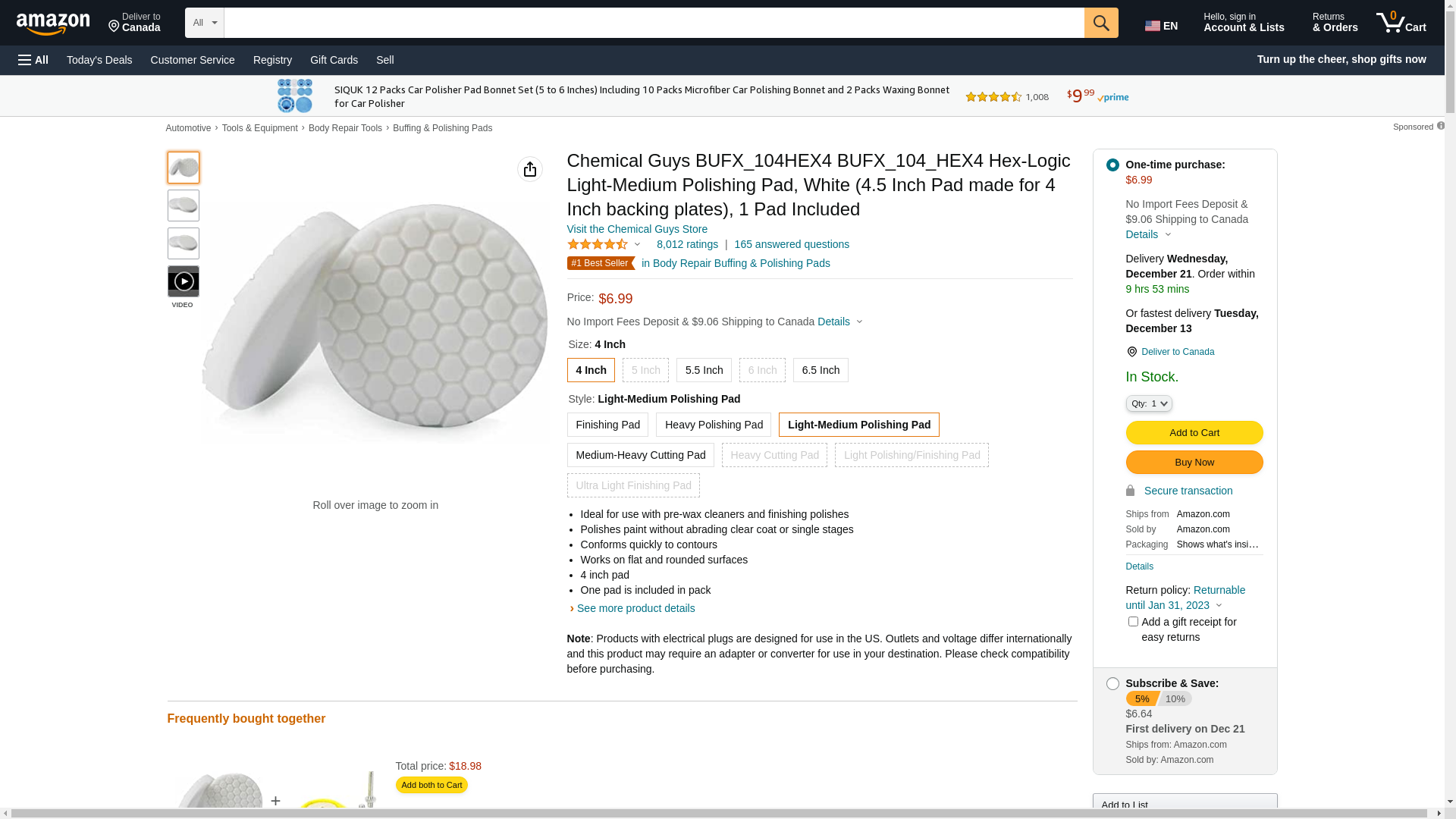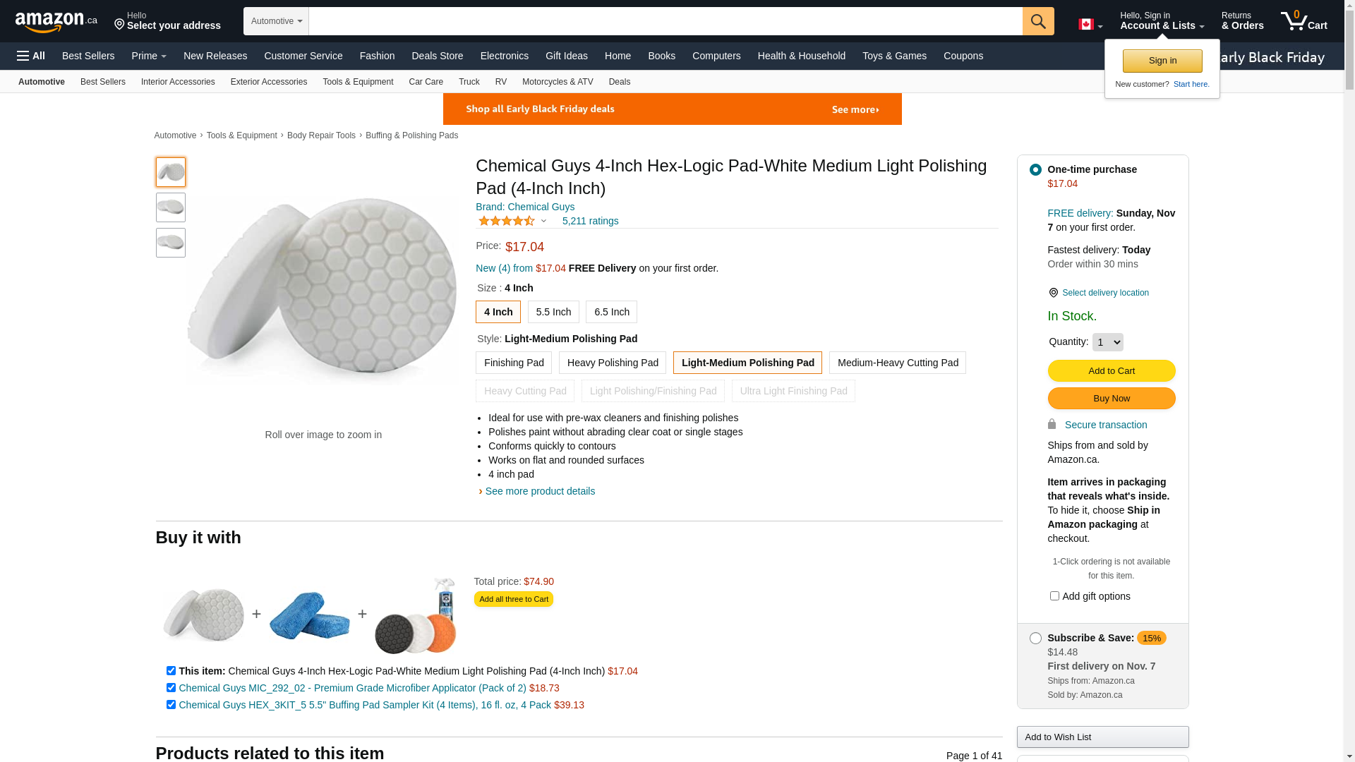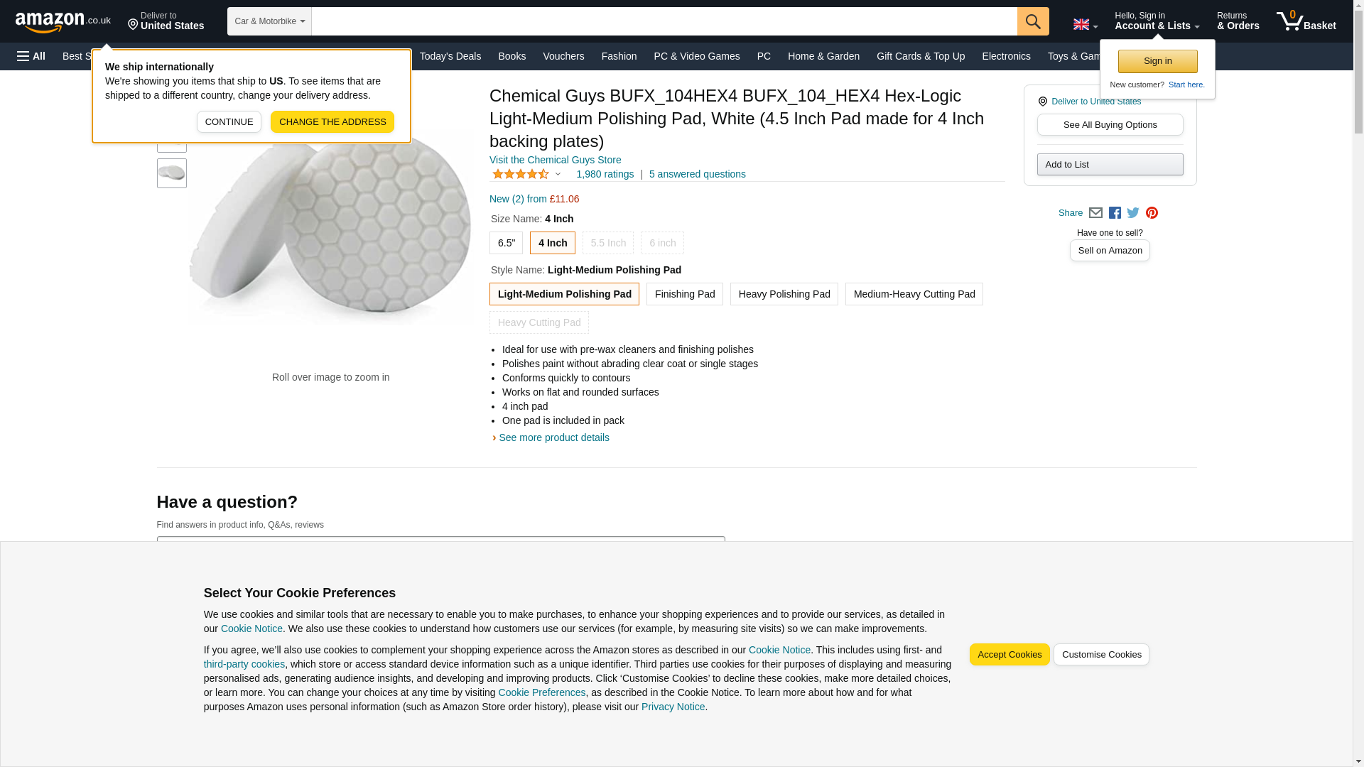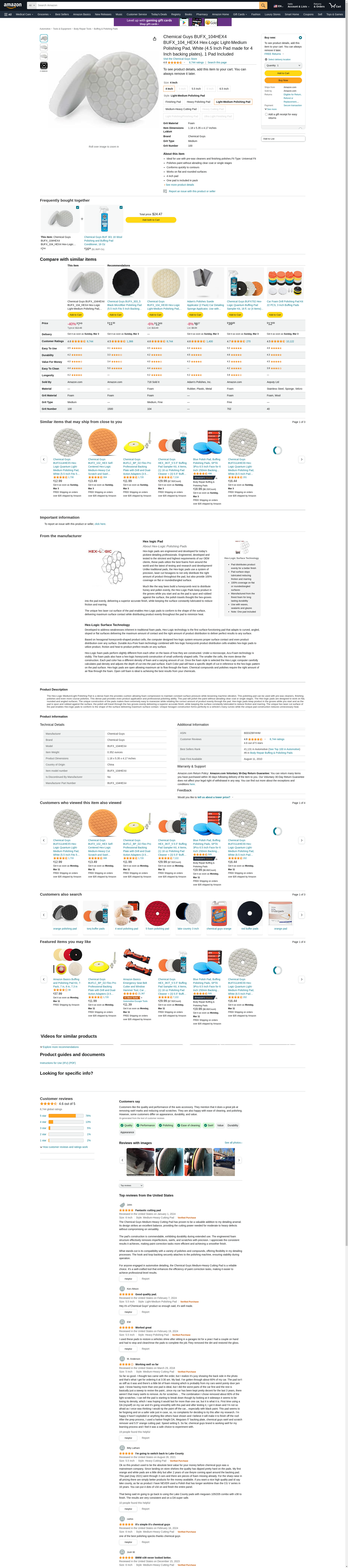 Chemical Guys BUFX_104HEX4 BUFX_104_HEX4 Hex-Logic Light-Medium Polishing Pad, White (4.5 Inch Pad made for 4 Inch backing plates), 1 Pad Included