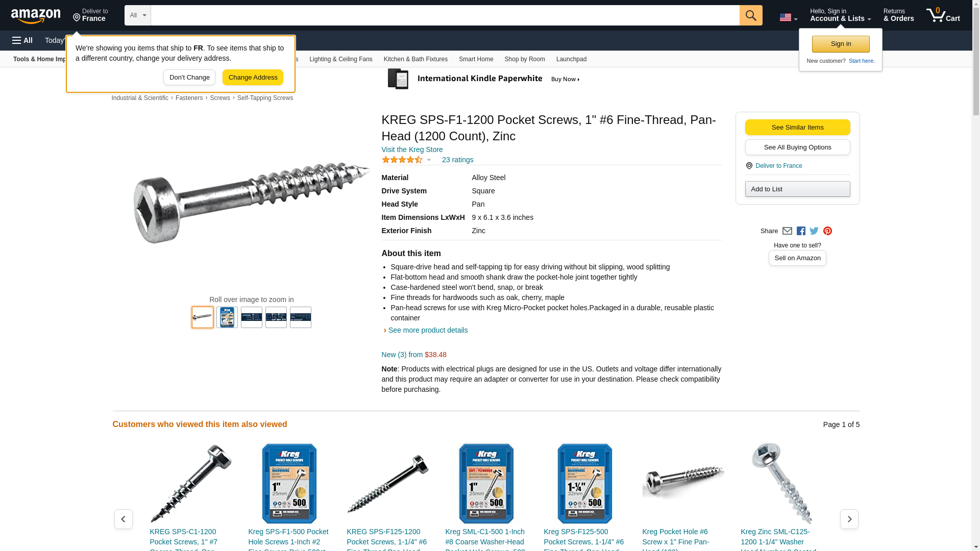 Kreg SPS-F1-1200 1 in. Pan Head Fine Thread Number 7 Zinc Coated Pocket Hole Screws 1200 Count | Kreg Pocket Hole Screws