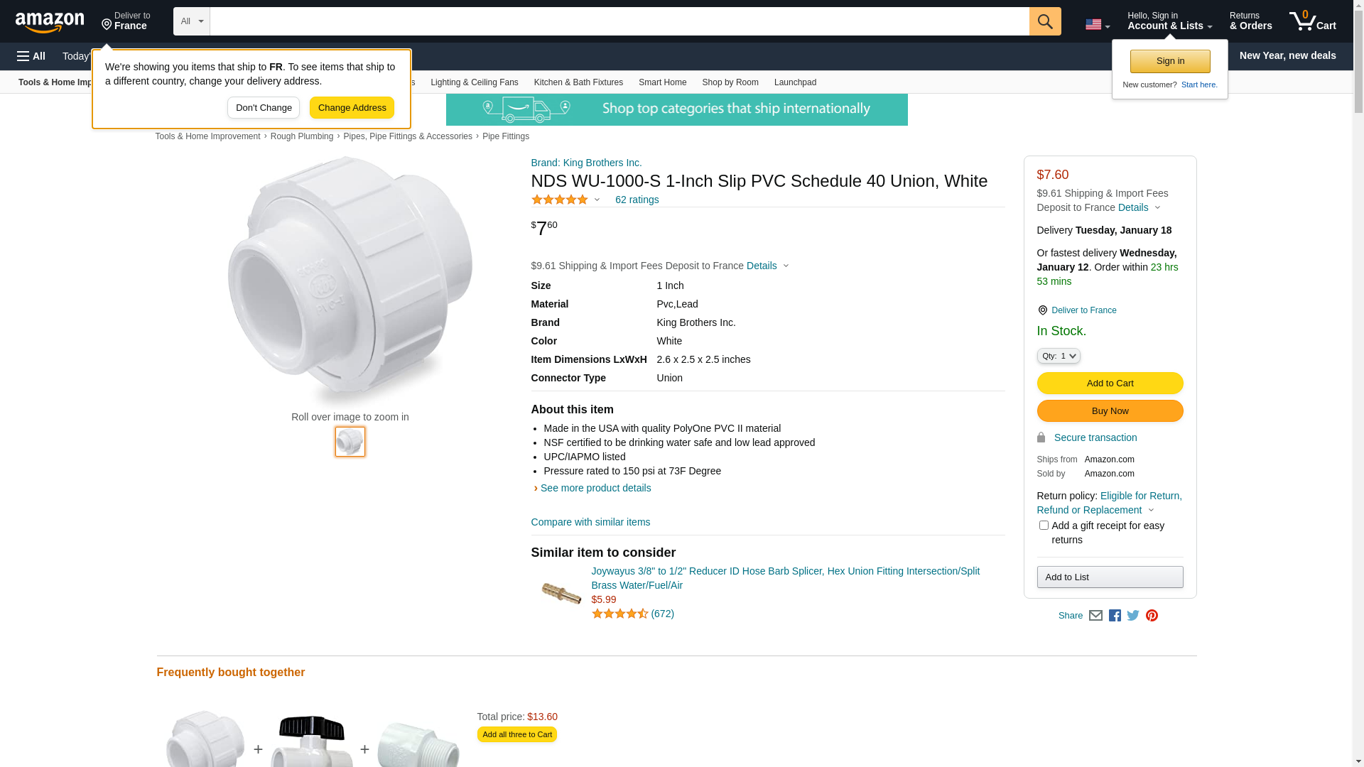 NDS WU-1000-S PVC Pipe Fitting, 1-Inch Slip Union, Schedule 40, EPDM O-ring, White (Pack of 2)