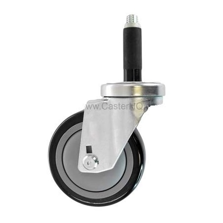 CasterHQ - 4" X 1-1/4" Swivel Caster | Black Polyurethane ON POLYOLEFIN Wheel | 7/8" Expanding STEM | 300 LBS Capacity