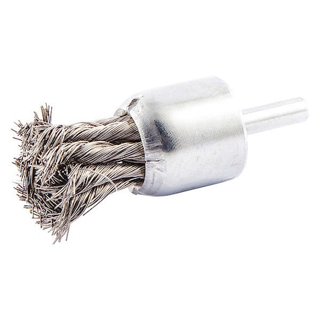 <br /><br /> Item: End Brush<br /> Item - End Brushes: End Brush<br /> Bristle Type: Knotted Wire<br /> Brush Dia.: 1"<br /> Abrasive Shank Size: 1/4"<br /> Wire Dia.: 0.010"<br /> Bristle Trim Length: 1-1/8"<br /> Abrasive Material: Stainless Steel<br /> Max. RPM: 20,000<br /> Overall Length: 2-3/4"