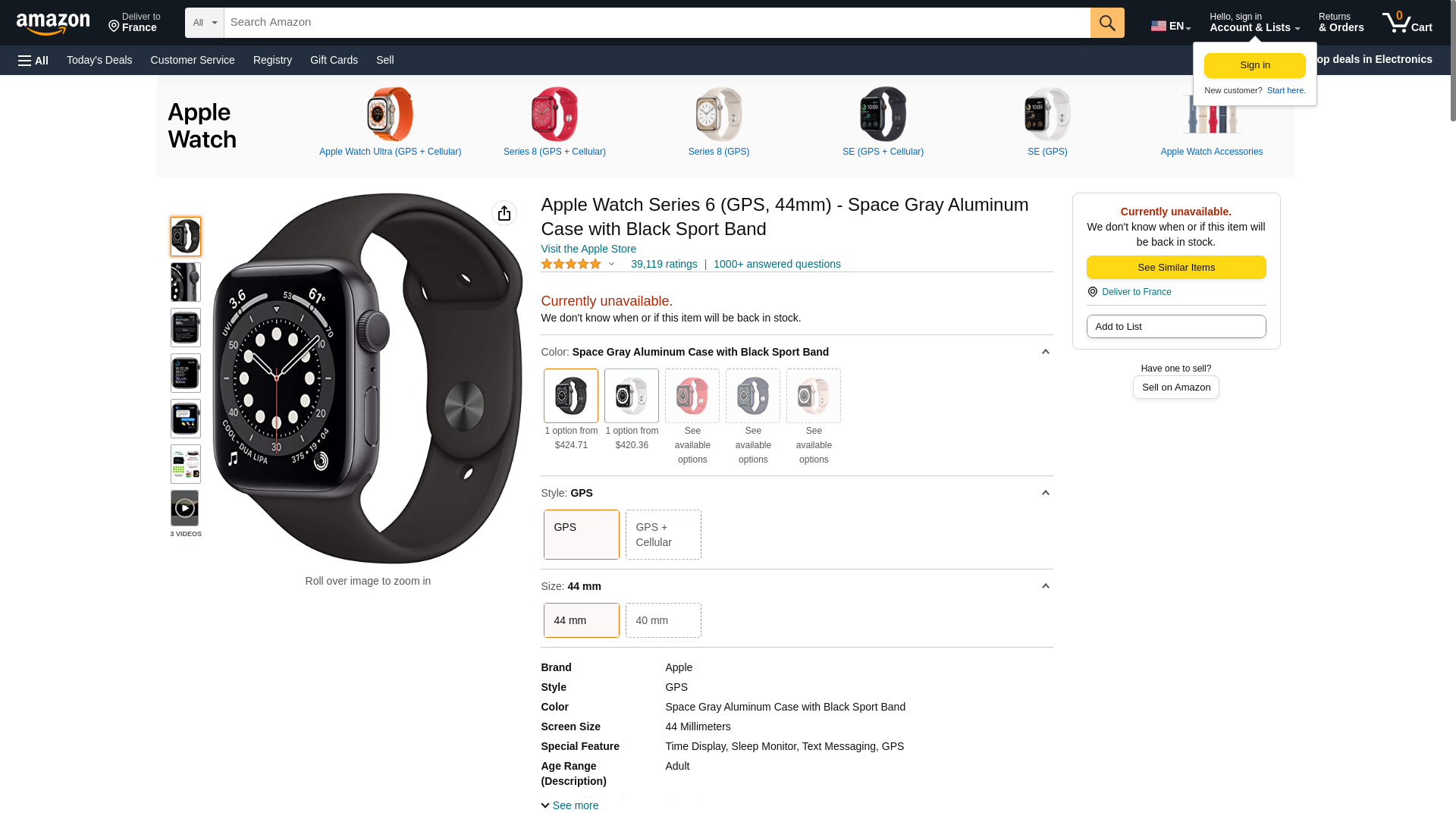 Apple Watch Series 6 (GPS, 44mm) - Space Gray Aluminum Case with Black Sport Band