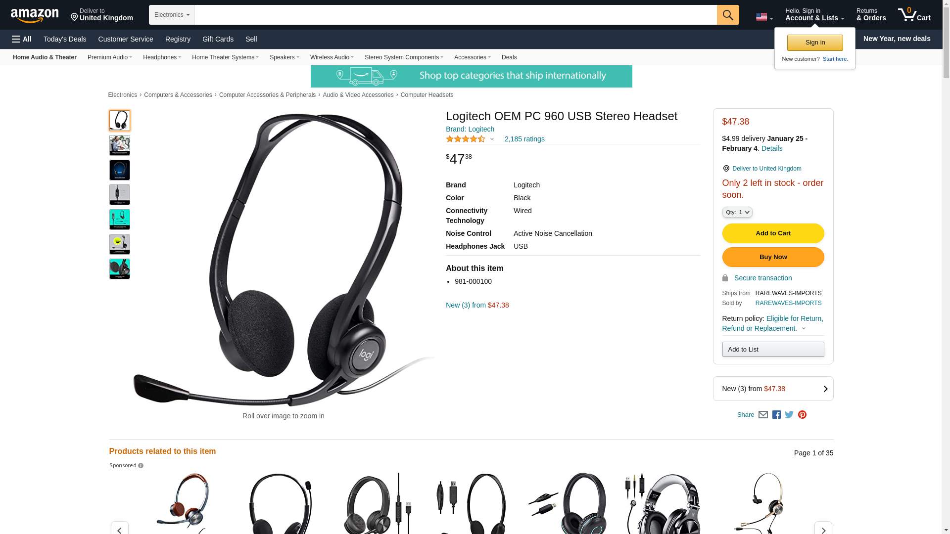 981-000100 | Logitech 960 Black Wired USB On Ear Headset | RS
