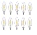 ELITCO LIGHTING E12LED105-10PK LED E12 CANDELABRA, BLUNT TIP, 2700K, 300°, CRI80, ES, UL, 6W, 40W EQUIVALENT, 15000HRS, LM480, DIMMABLE, 2 YEARS WARRANTY, INPUT VOLTAGE 120V. Collection: Kerz. Finish: Clear Cover. Dimension(in): 1.38(W) x 3.64(H). Assembly Required: no. Product Warranty: 2. Bulb: W E12(Not Included), Dimmable. Rated Location: Dry Rated. Rating: UL,ULC. Package Item Quantity: 10. Housing Material: Glass. Bulb Base Finish: chrome. Color Temperature: 2700K. Beam Angle: 300°. CRI: >80. Watts: 6. Watt Equivalent: 40. Lumens: 480. Average Life(Hours): 15000. Life Based on 3hrs/day(years): 13.6986301369863. Energy Star: YES. Power Factor: 0.9. Current: 55mA. Input Voltage: 120V. Lens: Clear Glass. LED Type: Epistar. Blunt-tip 6W, CRI80, LM480, 2700K, 120V, E12 LED candelabra filament bulb. Good for 15,000 hours of use. Estimated yearly energy cost: $ 0.7227 (based on 3 hours/day, 11/kWh; cost depends on rates and use). Average life based on 3 hours per day is 15000 hours. The base of the bulb is shorter compared to others, chrome base is not visible or sticking out from a socket candlesleeve.