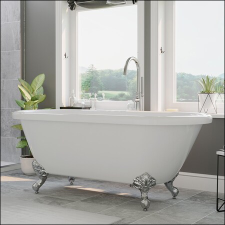 - Acrylic Double Ended Claw foot Bathtub 60" X 30" with No Faucet Drillings and Polished Chrome Feet