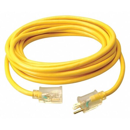 12/3 25' SJTW Vinyl Extension Cord with Lighted End Yellow - No. 02587