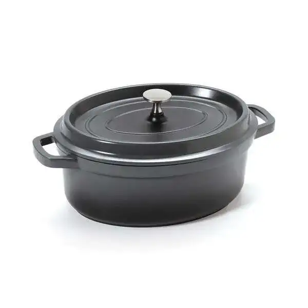 GET CA-009-GR/BK Heiss 3.5 Qt. Gray Enamel Coated Cast Aluminum Oval Dutch Oven with Lid