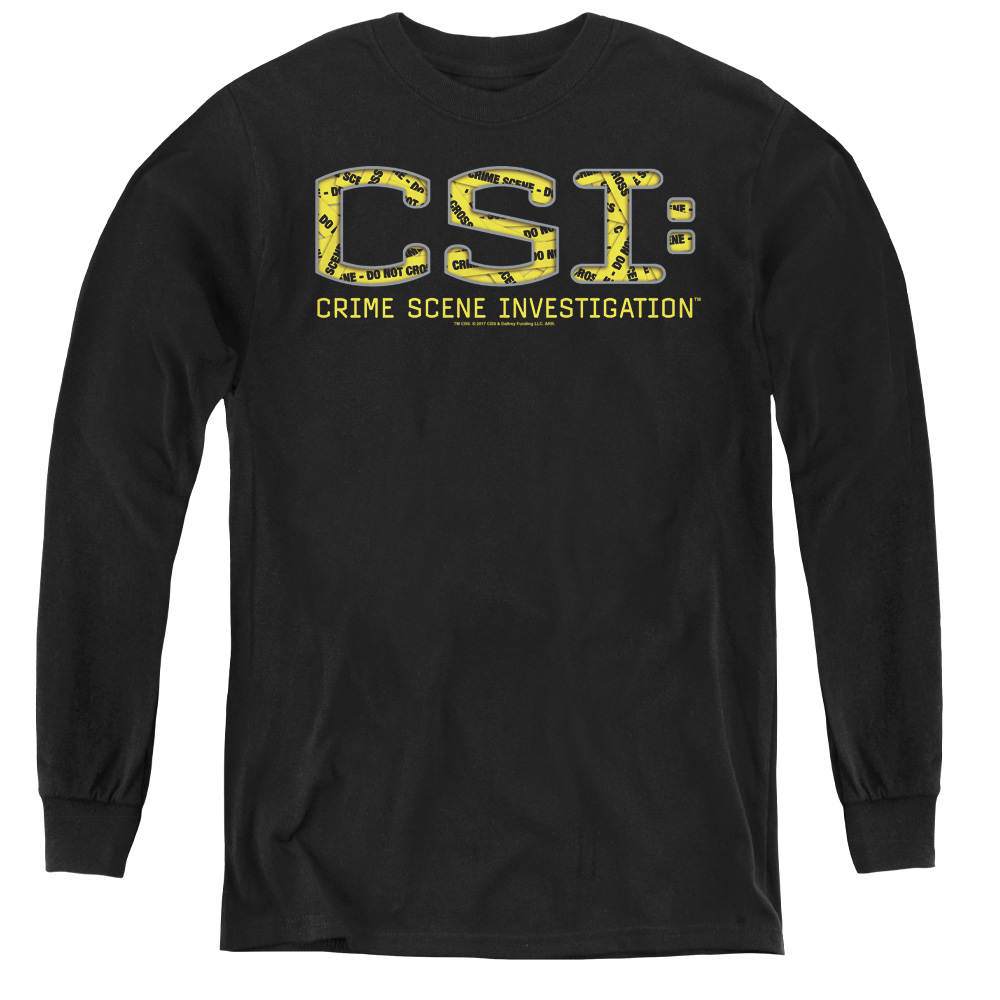 Trevco CBS946-YL-4 CSI & Collage Logo - Youth Long Sleeve Tee, Black - Extra Large