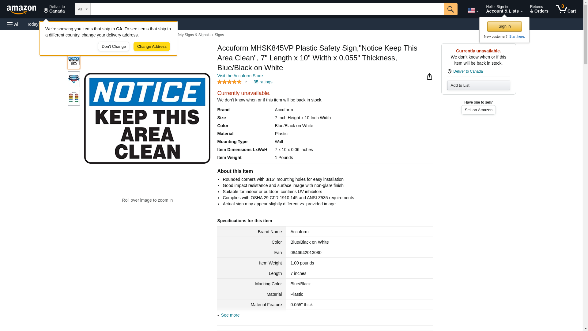 | Manufacturer | Accuform Signs |