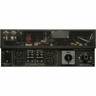 - Detachable back panel PDU with manual bypass switch enables hot-swappable whole-UPS replacement