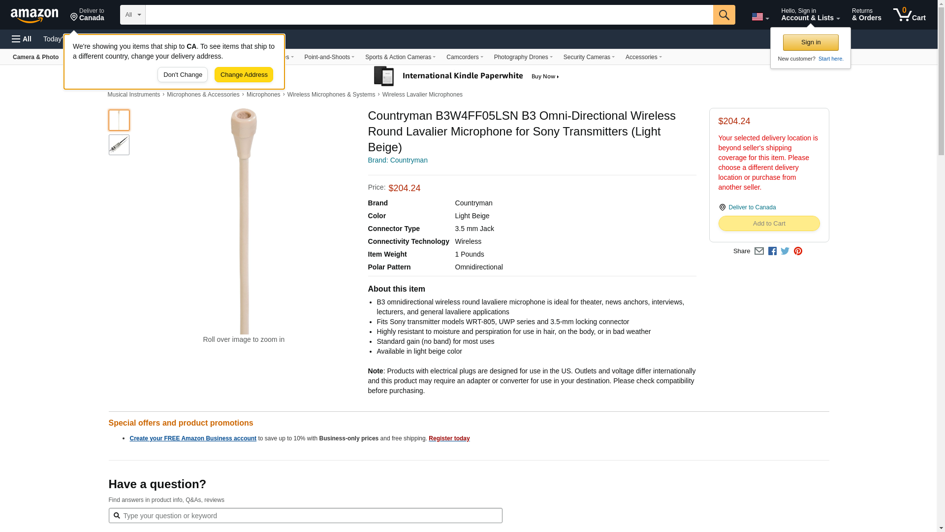 Countryman B3W4FF05LSN, Sony: WRT-805A, UWP Series, UTX-B1, UTX-B2, UTX-B03, (W4) Standard gain for most uses, (L) Light Beige, B3 Omnidirectional Lavalier Microphone