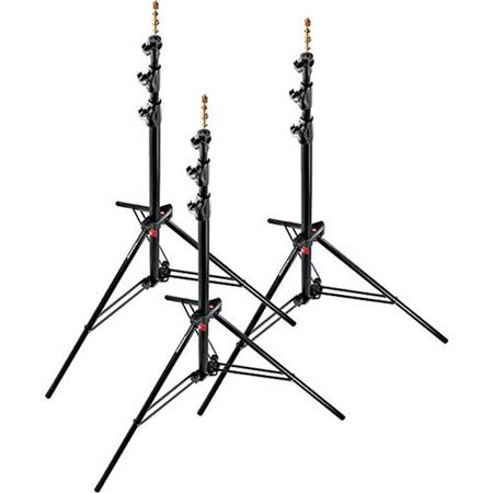 Manfrotto 1005BAC-3 9-Feet Alu Ranker Stand AC with 3 Section and 2 Risers, 3-Pack (Black)