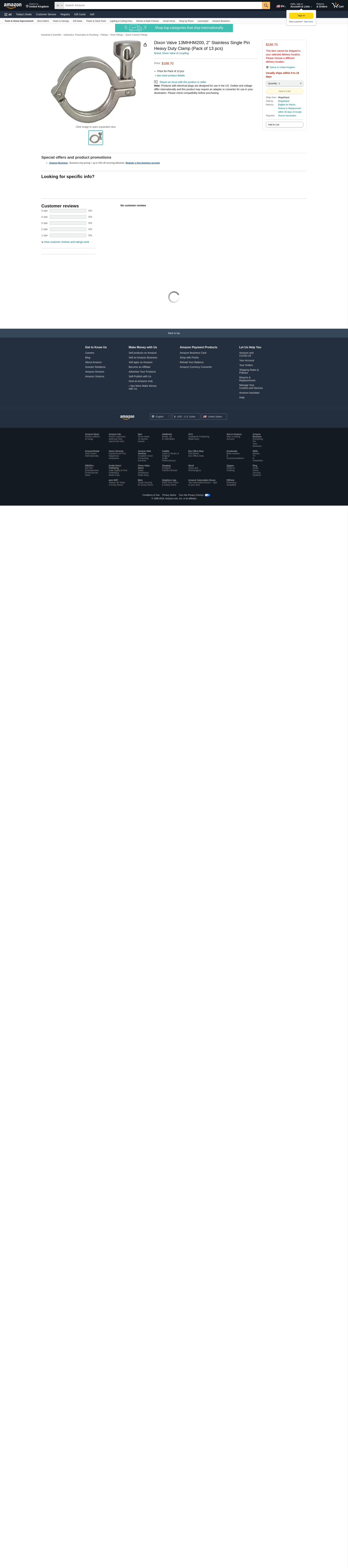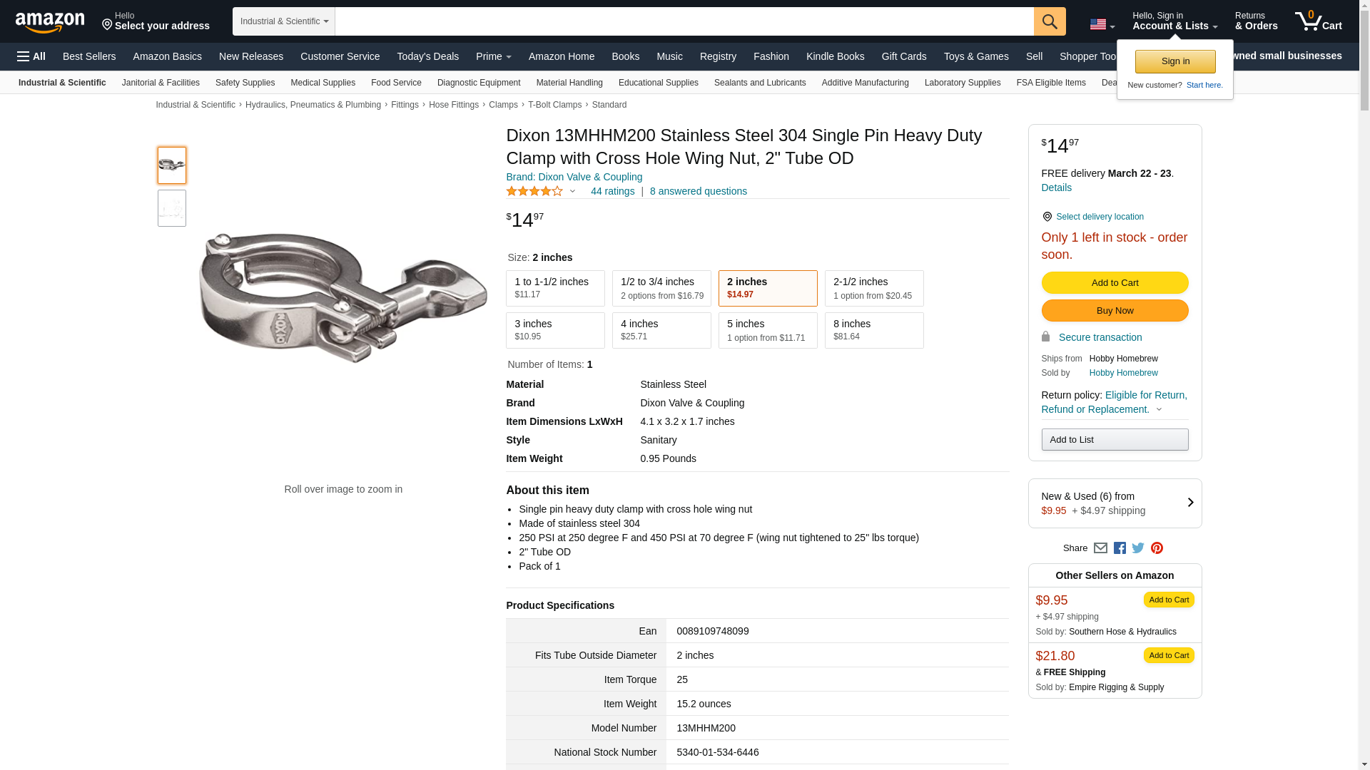 Dixon Valve 13MHHM200, 2" Stainless Single Pin Heavy Duty Clamp (Pack of 13 pcs)