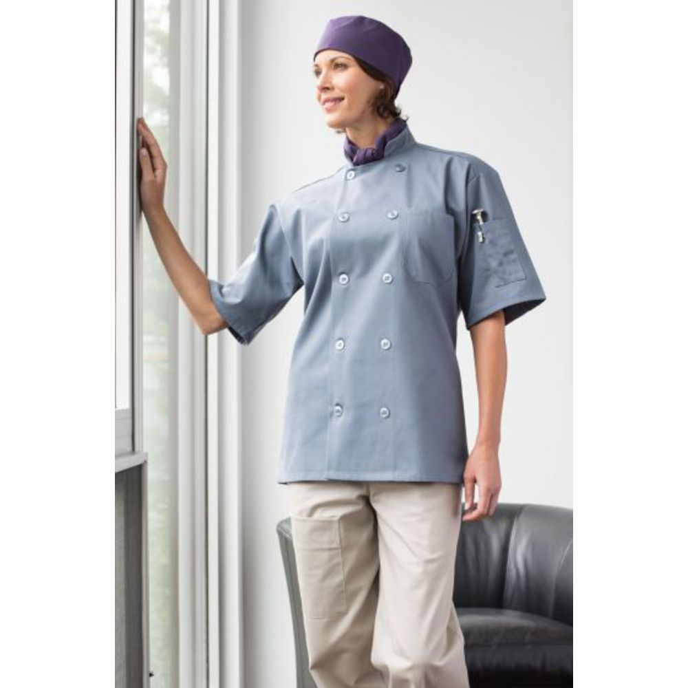 Uncommon Threads Unisex South Beach Chef Coat Short Sleeves, Steel, X-Small