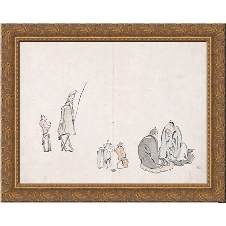 Untitled (Figures) 24x20 Gold Ornate Wood Framed Canvas Art by no Taiga, Ike