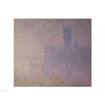 Claude Monet Stretched Canvas Art - Seagulls over the Houses of Parliament, 1904 - Large 36 x 24 inch Wall Art Decor Size.