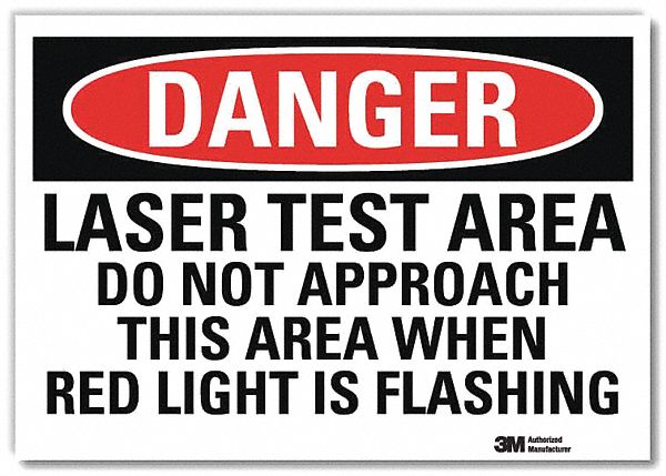 Smartsign U3-1748-RD_7X5"DANGER LASER TEST AREA DO NOT APPROACH THIS AREA WHEN RED LIGHT IS FLASHING" Reflective Self-Adhesive Decal, 7" x 5"