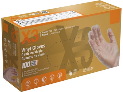 X3 Clear Vinyl Disposable Industrial Gloves, 3 Mil, Latex & Powder-Free, Food-Safe, Non-Sterile, Smooth, Small, Case of 1000