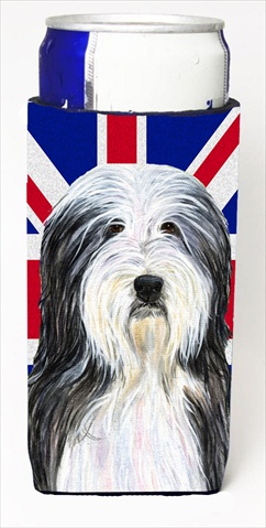 Caroline's Treasures SS4939MUK Bearded Collie with English Union Jack British Flag Ultra Hugger for slim cans Can Cooler Sleeve Hugger Machine Washable Drink Sleeve Hugger Collapsible Insulator Bevera