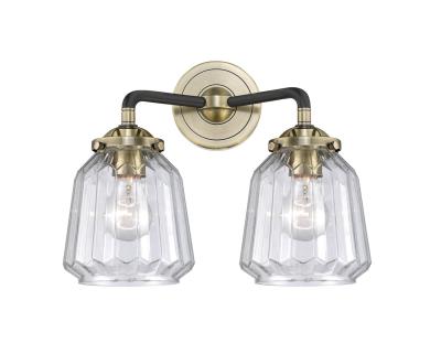 INNOVATIONS LIGHTING 284-2W-BAB-G142-LED NOUVEAU CHATHAM 2 LIGHT 14 INCH WALL MOUNT CLEAR GLASS VANITY LIGHT, BLACK...