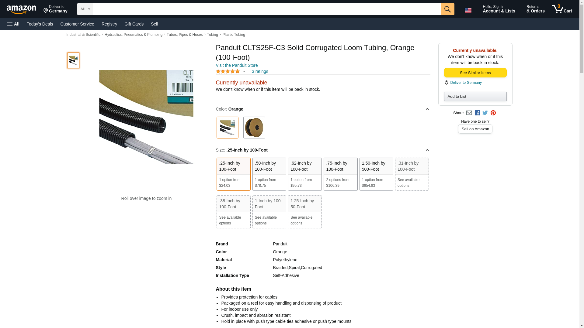 Panduit CLTS25F-C3 Solid Corrugated Loom Tubing, Orange (100-Foot)