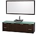 Modern clean lines and a truly elegant design aesthetic meet affordability in the Wyndham Collectionâ„ Amare Vanity. Available with green glass , acrylic resin or pure white man-made stone counters, and featuring soft close door hinges and drawer glides, you'll never hear a noisy door again! Meticulously finished with brushed Chrome hardware, the attention to detail on this elegant contemporary vanity is unrivalled. Features: Constructed of beautiful veneers over "Highest quality Grade E1 MDF", engineered for durability, and to prevent warping and last a lifetime 8-stage preparation, veneering and finishing process Highly water-resistant low V.O.C. sealed finish Unique and striking contemporary design Modern Wall-Mount Design Minimal assembly required Deep Doweled Drawers Fully-extending soft-close drawer slides Single-hole faucet mount Available with Porcelain, Granite, and Marble vessel sink(s) Faucet(s) not included Mirror included Metal exterior hardware with brushed chrome finish Two (2) functional doors Four (4) functional drawers Plenty of storage space Includes drain assemblies and P-traps for easy assembly Dimensions: 72 x 22-1/4 x 21-1/4 inches