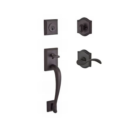 Baldwin SCNAPXCURRTAR112 Reserve Single Cylinder Handleset Napa x Curve with Traditional Arch Rose in Aged Bronze Finish Right Hand