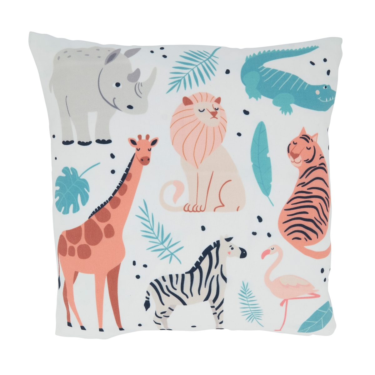SARO LIFESTYLE Avery Quinn Collection Safari Animals Baby Throw Pillow with Poly Filling, 16" x 16", Multi