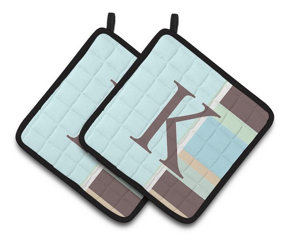 Carolines Treasures CJ1003-KPTHD Letter K Initial Monogram - Blue Stripes Pair of Pot Holders, 7.5 x 3 x 7.5 in.