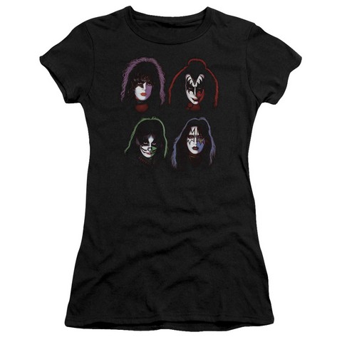 KISS Vintage Rock Metal Band Rock N' Roll Music Solo Color Heads JRS Sheer T-Shirt Black