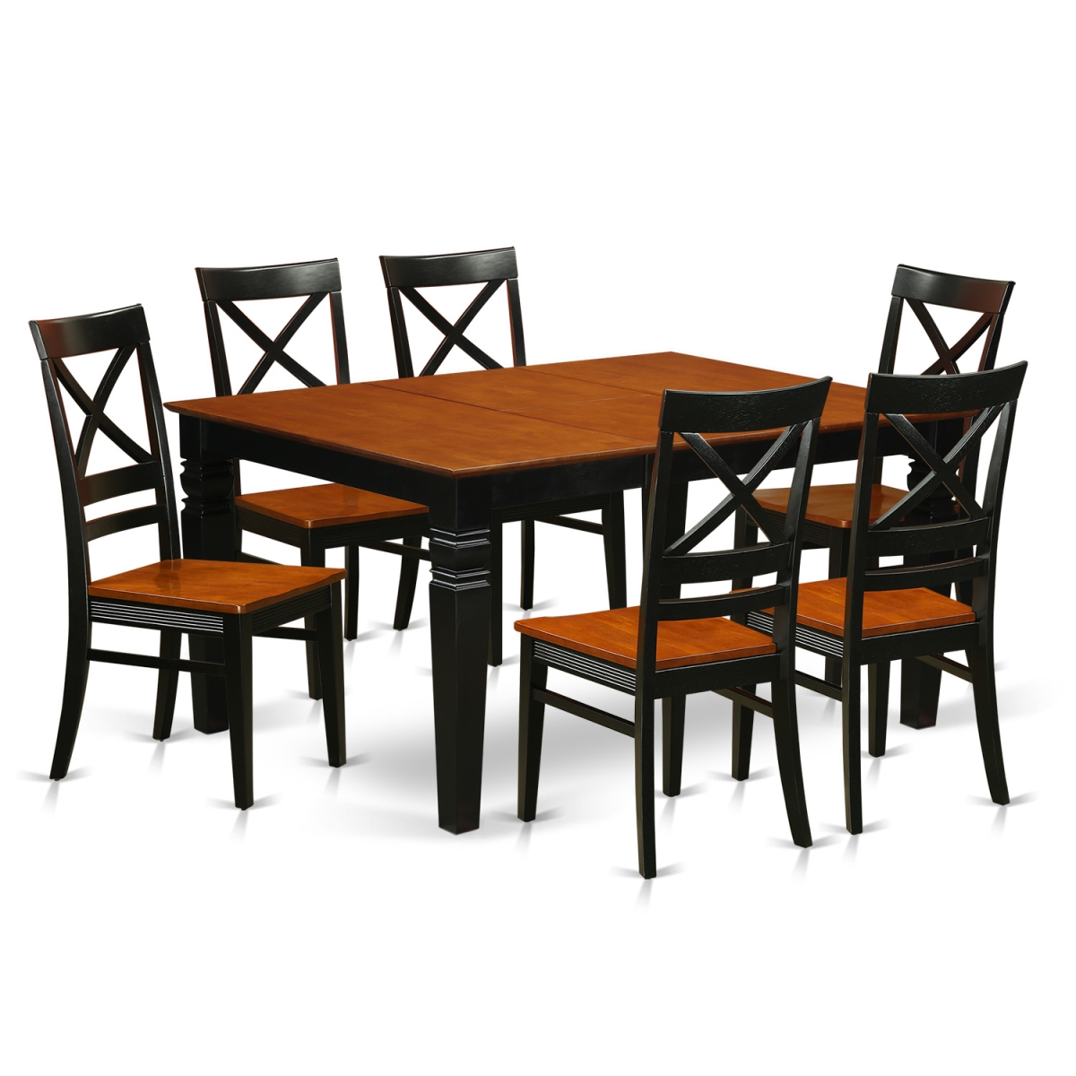 East West Furniture WEQU7-BCH-W Dining Set with 1 Weston Kitchen Table & Six Wood Chairs, Distinctive Black - 7 Piec