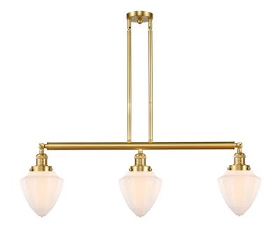 This 3 light Island Light from the Franklin Restoration Bullet collection by Innovations Lighting will enhance your home with a perfect mix of form and function. The features include a Satin Gold finish applied by experts. Product Features Include: Brand: Innovations Lighting, Collection: Franklin Restoration Bullet, SKU: 213-SG-G661-7, UPC: 729625078026, Category: Island Light, Finish: Satin Gold, Glass: Matte White, Material: Steel/Cast Brass/Glass, Designer: Bruno Marashlian, Width: 38.00 in., Height: 15.25 in., Max Height: 48.25 in., Extension/Depth: 7.00 in., Backplate/Canopy Width: 4.50 in., Backplate/Canopy Length: 0.00 in., Backplate/Canopy Thickness: 0.75 in., Weight: 11.65 lb., Included Chain/Rods/Cord: 2-6 and 4-12 inch stems, Included Lead Wire: 10 Feet Of Wire, Warranty: 2 Year Finish, Lifetime Electrical, Bulbs Included: Yes, Bulb Category: Incandescent, Primary Bulb(s): 3 x 60.00 watts Medium Base ST64 Vintage, Color Temperature: 2200K, Color Rendering Index: 99.9000, Total Lumens: 220, Voltage: 120, Safety Rating: Damp Location