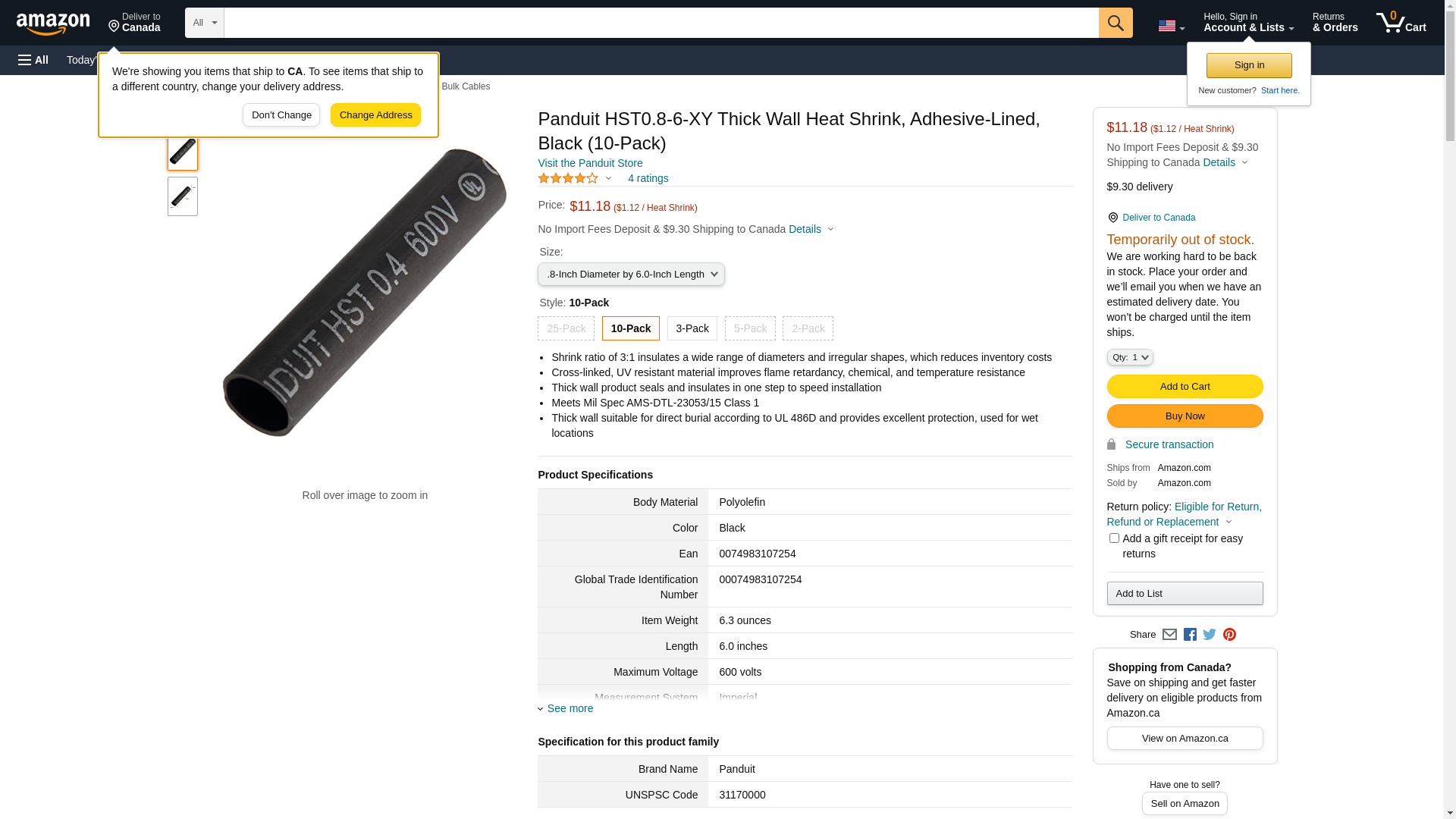 Panduit HST0.8-6-XY Thick Wall Heat Shrink, Adhesive-Lined, Black (10-Pack)