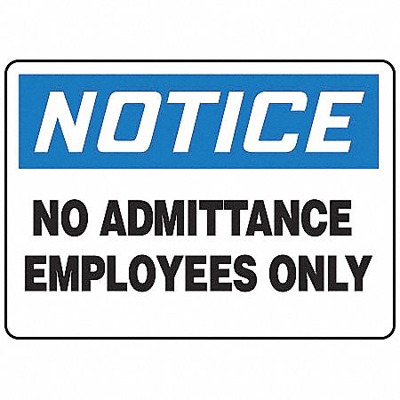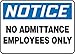 NOTICE NO ADMITTANCE EMPLOYEES ONLY 10" x 14" Aluminum Sign