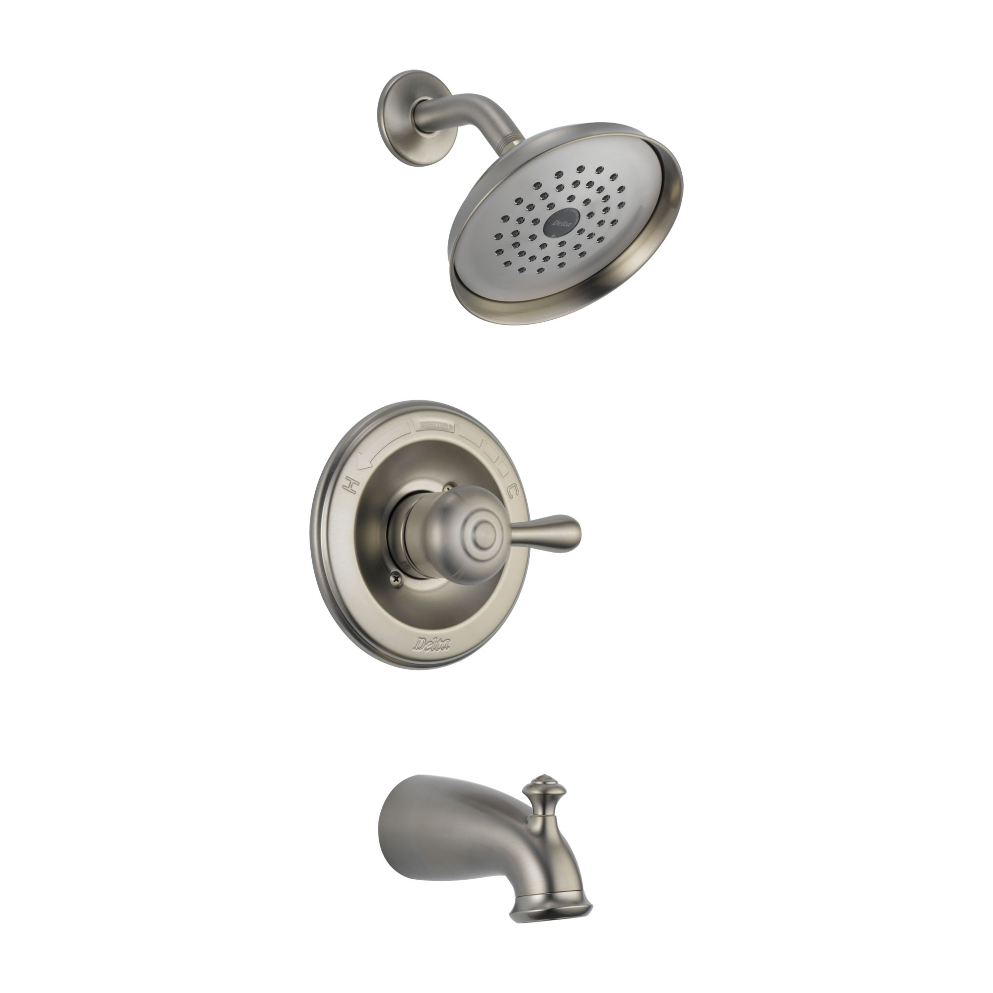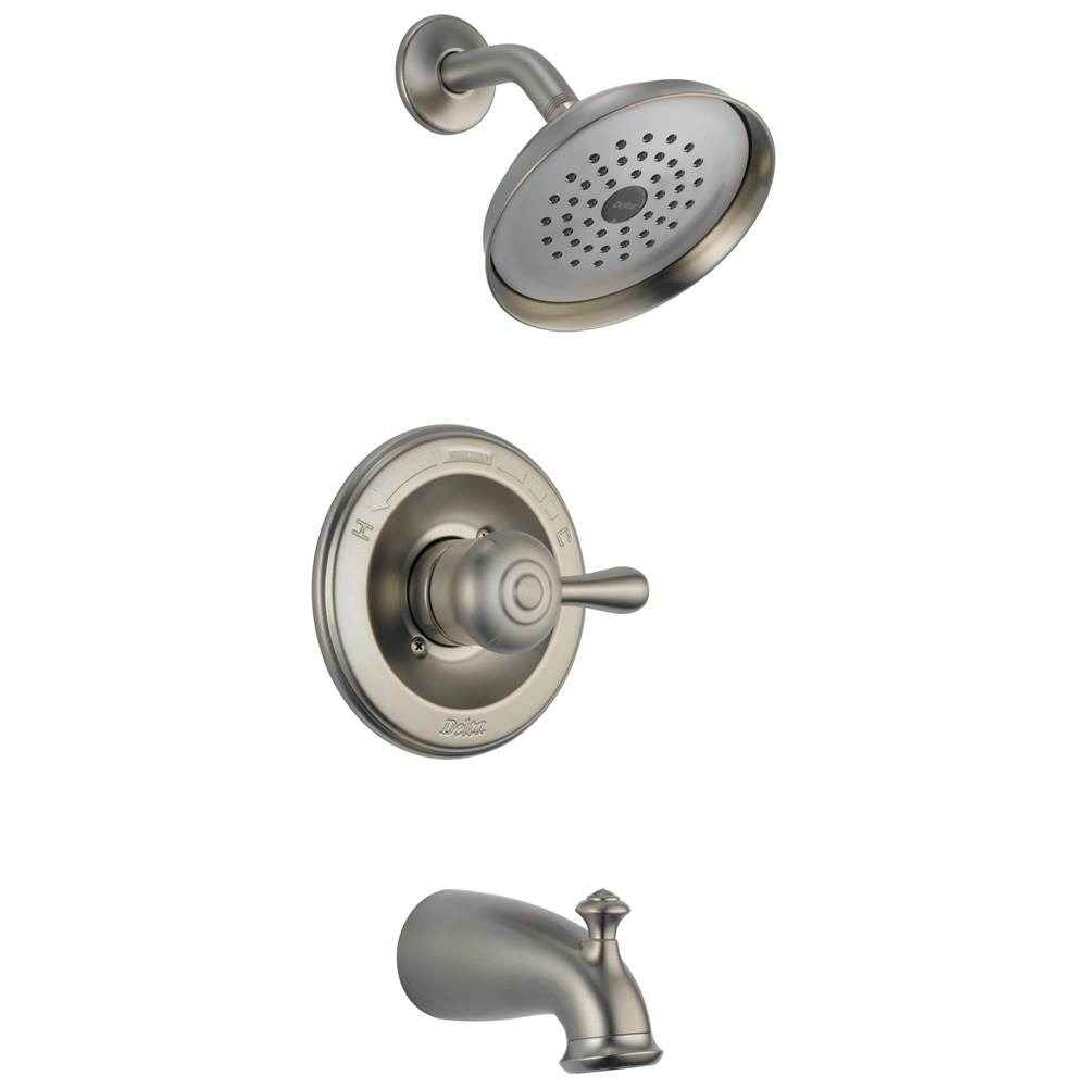 Delta Tub and Shower Faucet 1 Handle Leland Stainless Steel Finish Brass Material