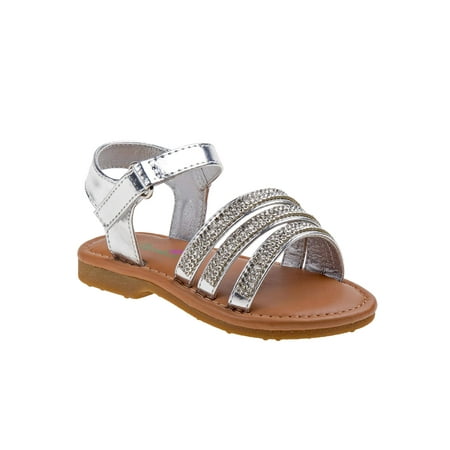 <ul> <li>Stylish multi strapped girls' sandals</li> <li>Rhinestone embellishment detailing</li> <li>Hook and loop closures for support and added convenience </li> <li>100% Manmade materials</li> </ul>