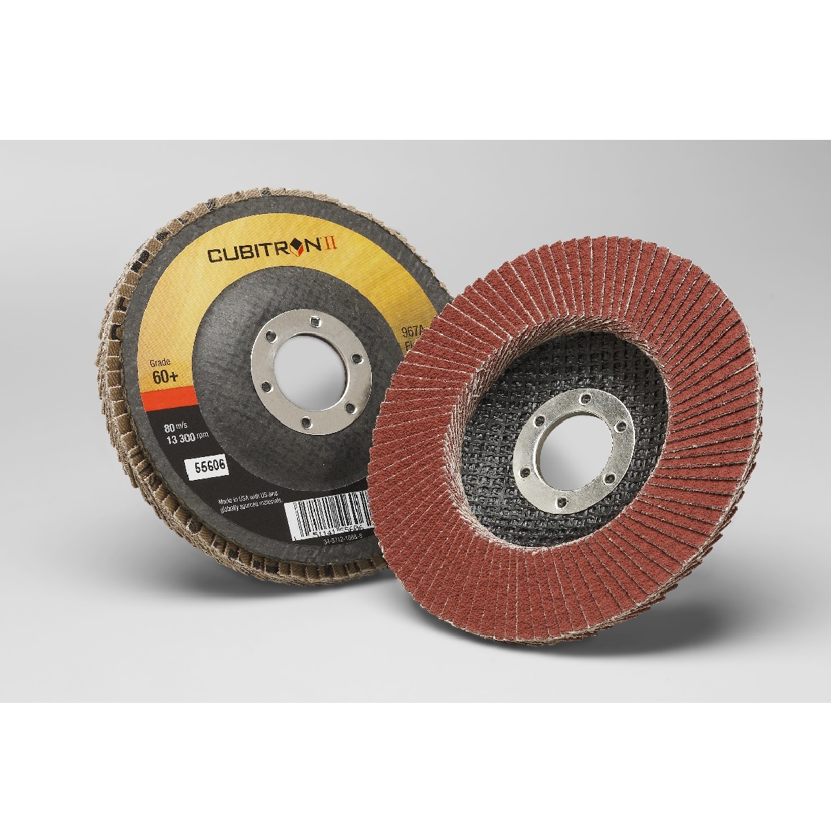 3M™ Cubitron™ II Flap Disc 967A 4-1/2" x 7/8" 60 Grit Ceramic Grain Type 27 Wheel - Pkg Qty 10
