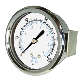 PIC Gauges 103D-354CF 3-1/2", 30/0/150 PSI, 1/4" Center Back Connection Mount with U-clamp, Plastic Lens, Brass Internals
