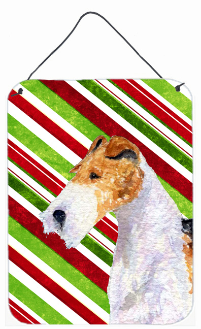Carolines Treasures SS4547DS1216 12 x 16 in. Fox Terrier Candy Cane Holiday Christmas Aluminium Metal Wall Or Door Hangi