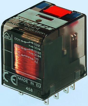 Electromechanical Relay 115VAC 4.845KOhm 24A DPDT (28x22.5x35)mm Plug-In Industrial Relay