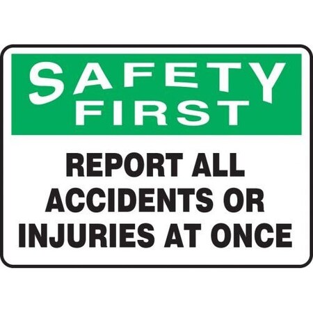 Accuform MFSD932XT Report SAFETY FIRST REPORT ALL ACCIDENTS OR INJURIES AT ONCE 10" x 14" Dura-Plastic
