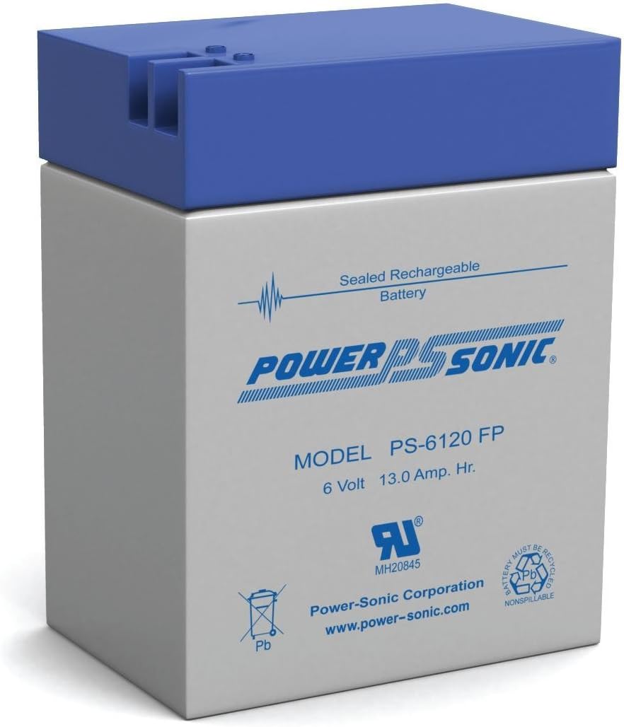 The Power-Sonic PS-6120 FP is a 6V 12AH Sealed Lead Acid Battery with FP Terminals. This is an original factory product and not a replacement battery.