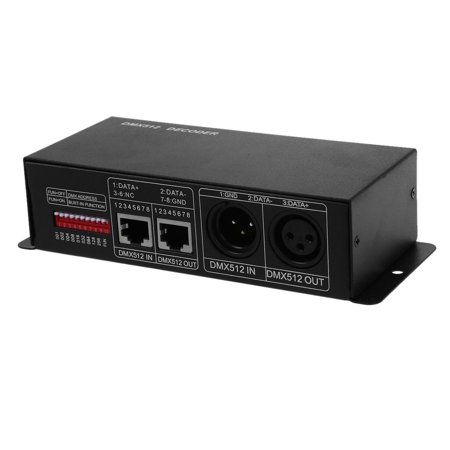 <ul> <li>Receives standard DMX-512 digital control signal and transformrd it into PWM signal to adjust LED.</li> <li>You could connect with DMX digital console to achieve RGB dimming functions.</li> <li>DMX address can be set through dip switch.</li> <li>Two signal interfaces: XLR-3 and RJ45.</li> <li>Up to 15 modes and 31 steps speeds for your options.</li> </ul>