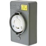 Install a Safety-Shroud Twist-Lock molded thermoplastic shroud to help eliminate any possible user contact with energized or partially connected plugs, and to keep blades from bending.<br /><br /> Item: Locking Receptacle<br /> Shrouded / Non-Shrouded: Shrouded<br /> Wiring Style: Standard<br /> Mounting Type: Surface Mount<br /> Grade: Industrial<br /> Material: Impact Modified PBT<br /> Amps: 30<br /> Voltage: 125VAC<br /> Number of Poles: 2<br /> Number of Wires: 3<br /> Color: Gray<br /> NEMA Configuration: L5-30R<br /> NEMA Rating: 4X, 12<br /> IP Rating: 20<br /> Phase: 1<br /> HP: 1.0<br /> Standards: UL/CSA<br /> Special Features: Corrosion Resistant