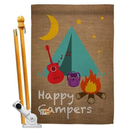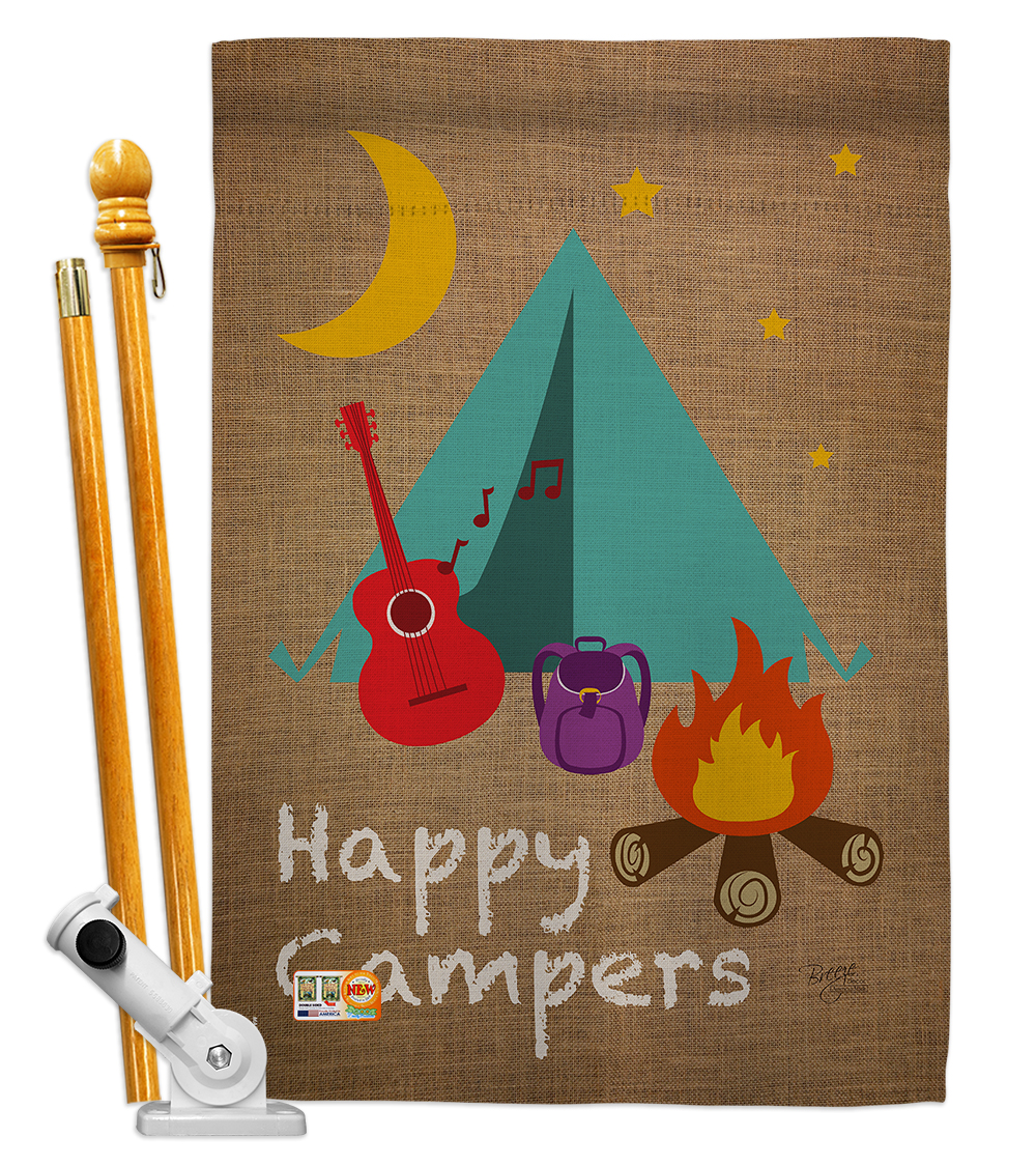 Breeze Decor HS109045-BO Happy Campers Nature Outdoor Decorative Vertical House Flag Set, 28"x 40" w/Flagpole, Multi-Color