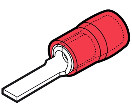 Cembre RKY-PP16/23 crimp wire flat blade terminal is insulated with red polyamide and accommodates 22-16 AWG wire. Length: 1.13". Made from tin plated copper.