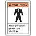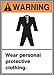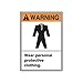 Accuform, MRPE307VS, 10" x 7" ANSI Warning Safety Sign "Wear Personal Protective Clothing" Adhesive Vinyl Features: Flexible 4-mil thick vinyl with acrylic adhesive Non-glare surface printed Moisture resistant Service temperature range: -40 to 176 F